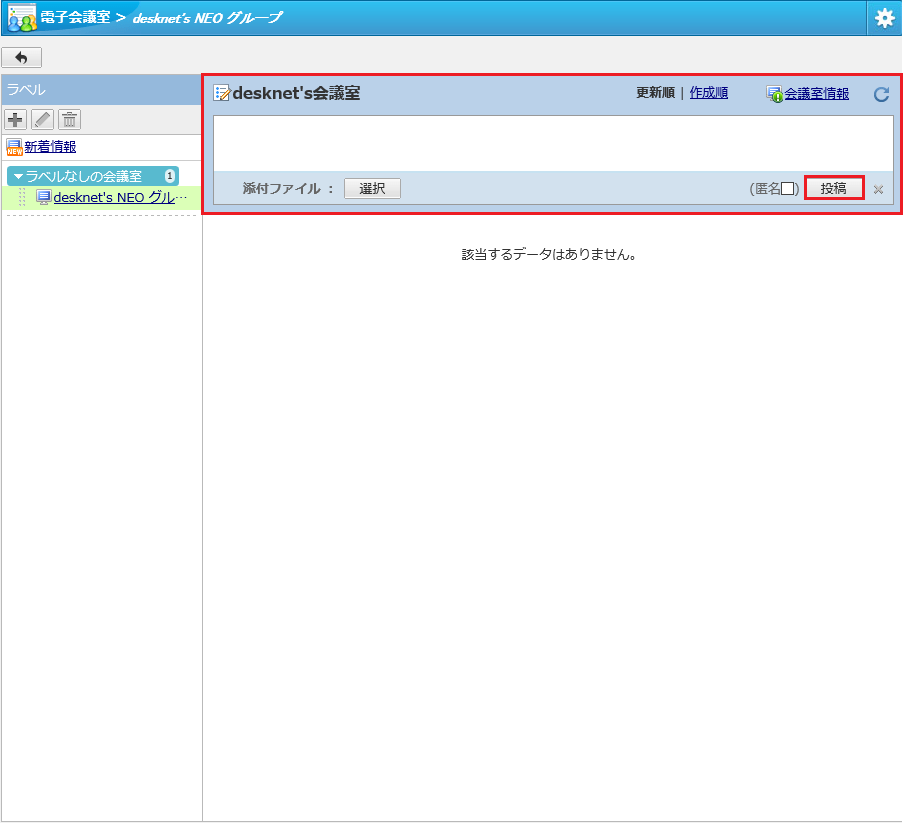 メニュー内の「電子会議室」をクリックすると、「電子会議室」画面が開きます。
